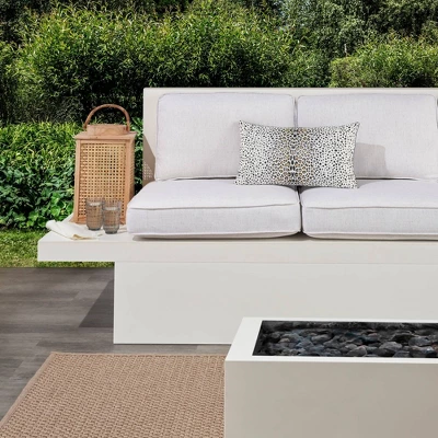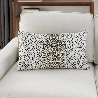 Toss exotic charm onto your outdoor patio chair or couch with this outdoor leopard print lumbar throw pillow from Mina Victory Home Accents. Made from smooth polyester fabric, the printed front cover reverses to a solid back for two styles in one pillow. This handmade pillow includes a zipper closure so that you can easily remove the cover for regular cleaning. 12” x 21” rectangle; polyester insert included.