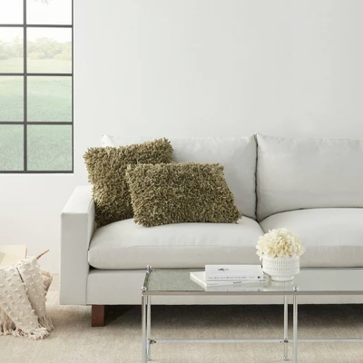 The Chindi Woven Shag throw pillow from Mina Victory Home Accents puts a funky spin on a classic pillow design. Its textured face is covered with strips of poly-cotton blended fabric that feels amazingly soft to the touch, making it a staple while you curl up with your favorite book or TV show. Lovingly handmade in sage green with a woven cotton back and polyester fill. 14” x 20” rectangle. Pattern appears on face only.