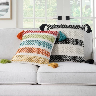 18″x18″ Woven Loops Striped Square Throw Pillow With Tassels – Mina Victory