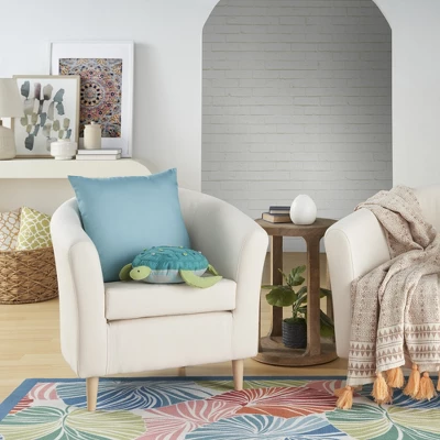 Fuel your child’s love for aquatic adventure with this sea turtle throw pillow from Mina Victory Home Accents. Brimming with textured accents like an embroidered shell, knotted eyes and pom poms, it’s a delightful companion during story time, play time, and more! With an underside stuffed full of soft polyester, this stuffed animal pillow is also a great spot for nap time. Handmade cotton cover measures approximately 13” x 14”.
