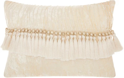 - Ultra glam lumbar pillow adorned with knotted tassels